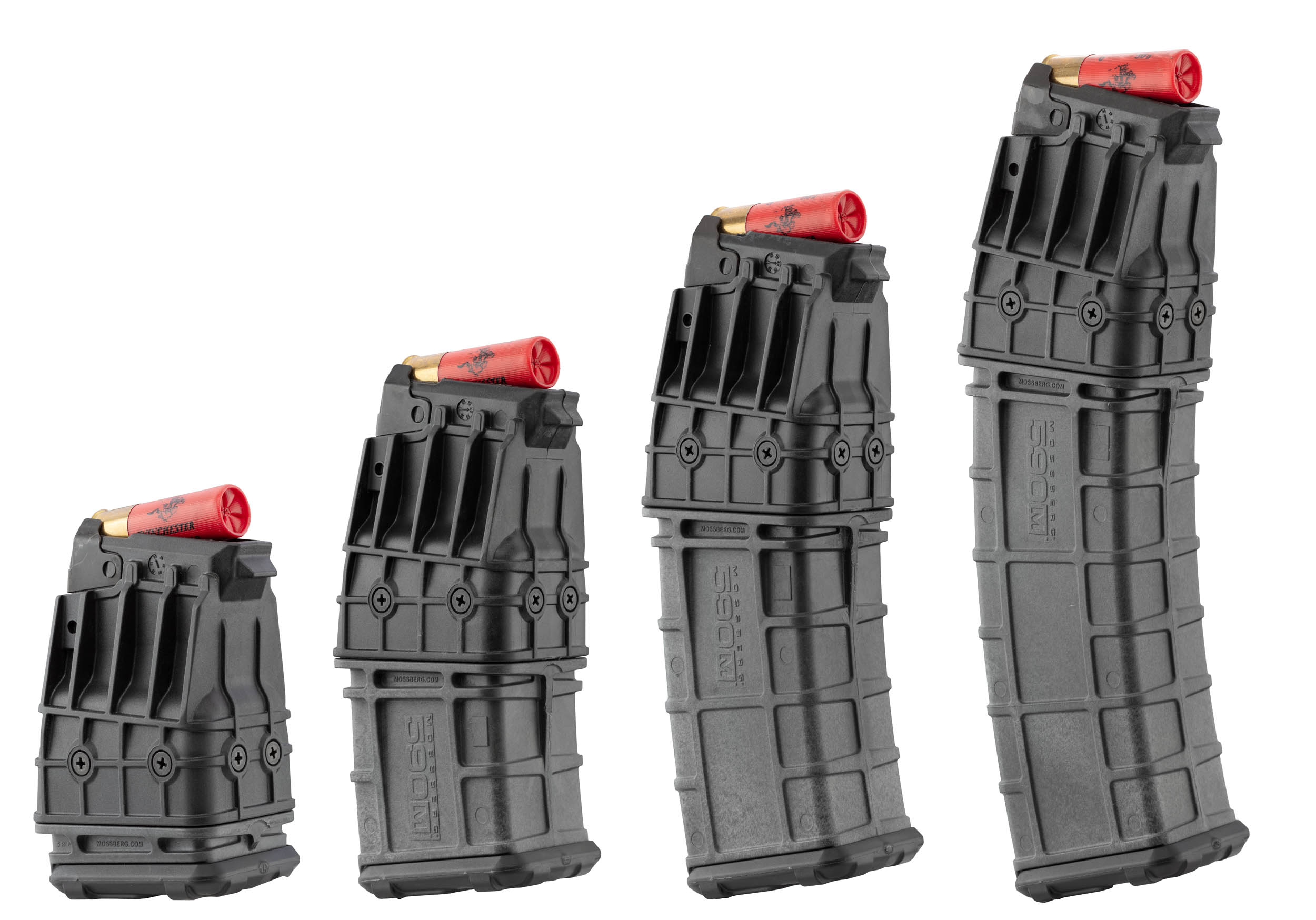 Chargeurs polymère haute résistance pour fusils à pompe Mossberg 590M, disponibles en 4 capacités (5, 10, 15 et 20 coups). Compatibilité parfaite avec les plateformes Mag-Fed. Mécanisme d'alimentation fluide et sécurisé.