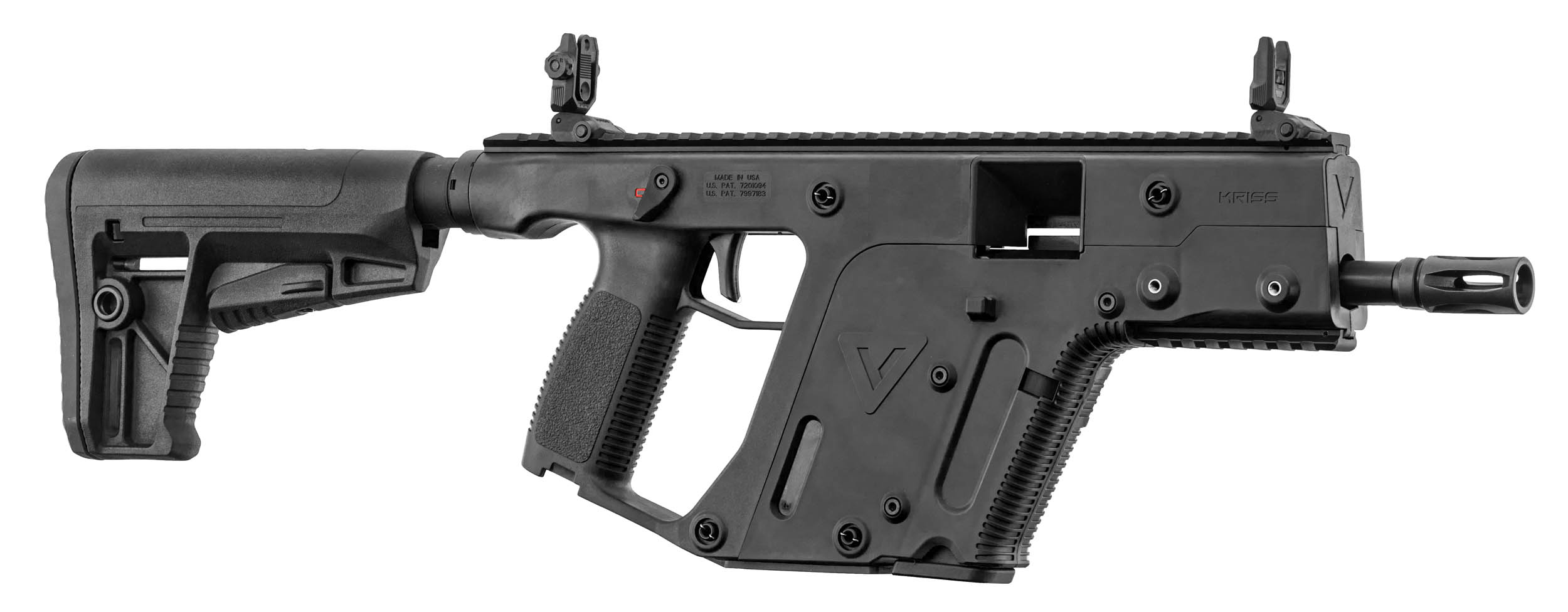 Doté d'une culasse avec un retard à l'ouverture, son mouvement de recul se fait vers le bas, afin de contrer l'effet de relèvement du canon. Le KRISS Vector apporte ainsi une stabilité maximale, un recul réduit, même à des cadences de tir élevées.