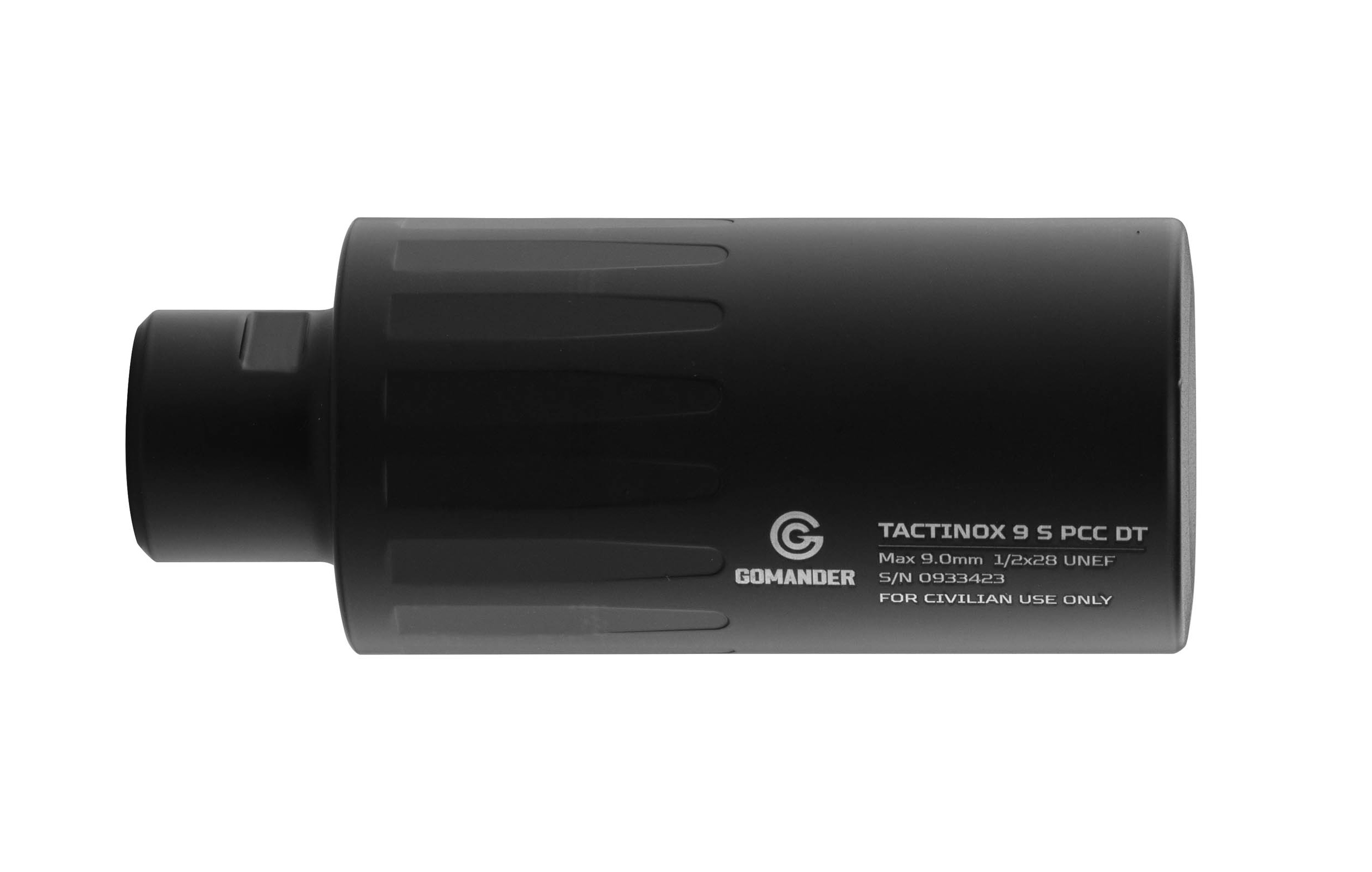 | Réf. GOM120 | Désignation SILENCIEUX GOMANDER TACTINOX 9S PCC DT (DIRECT THREAD) 1/2X28 NOIR | Catégorie légale Vente libre | Calibre 9 x 19 | Filetage 1/2 x 28 | Longueur (cm) 10.7 | Diam. (mm) 42 | Poids (g) 330 | Coloris Noir |