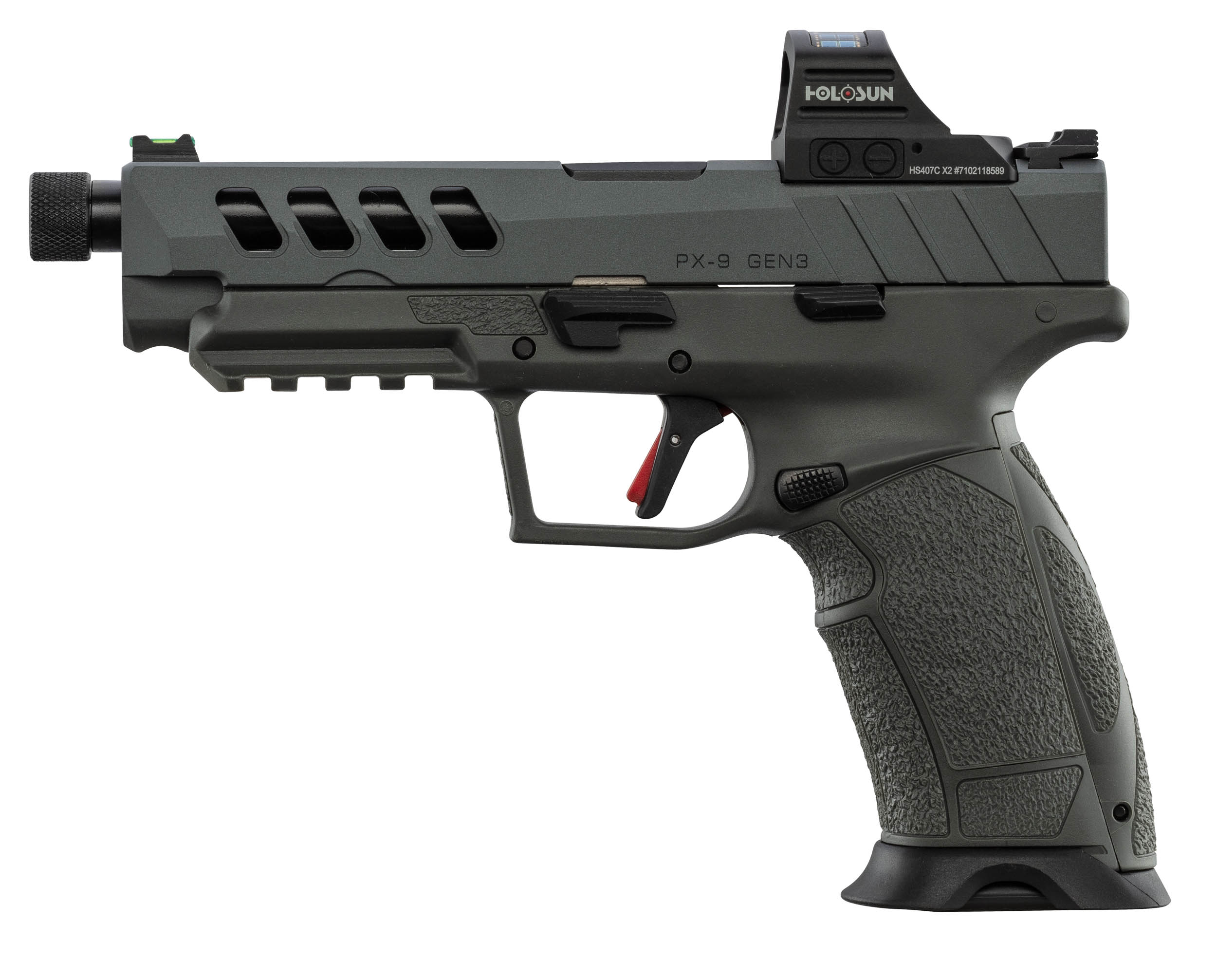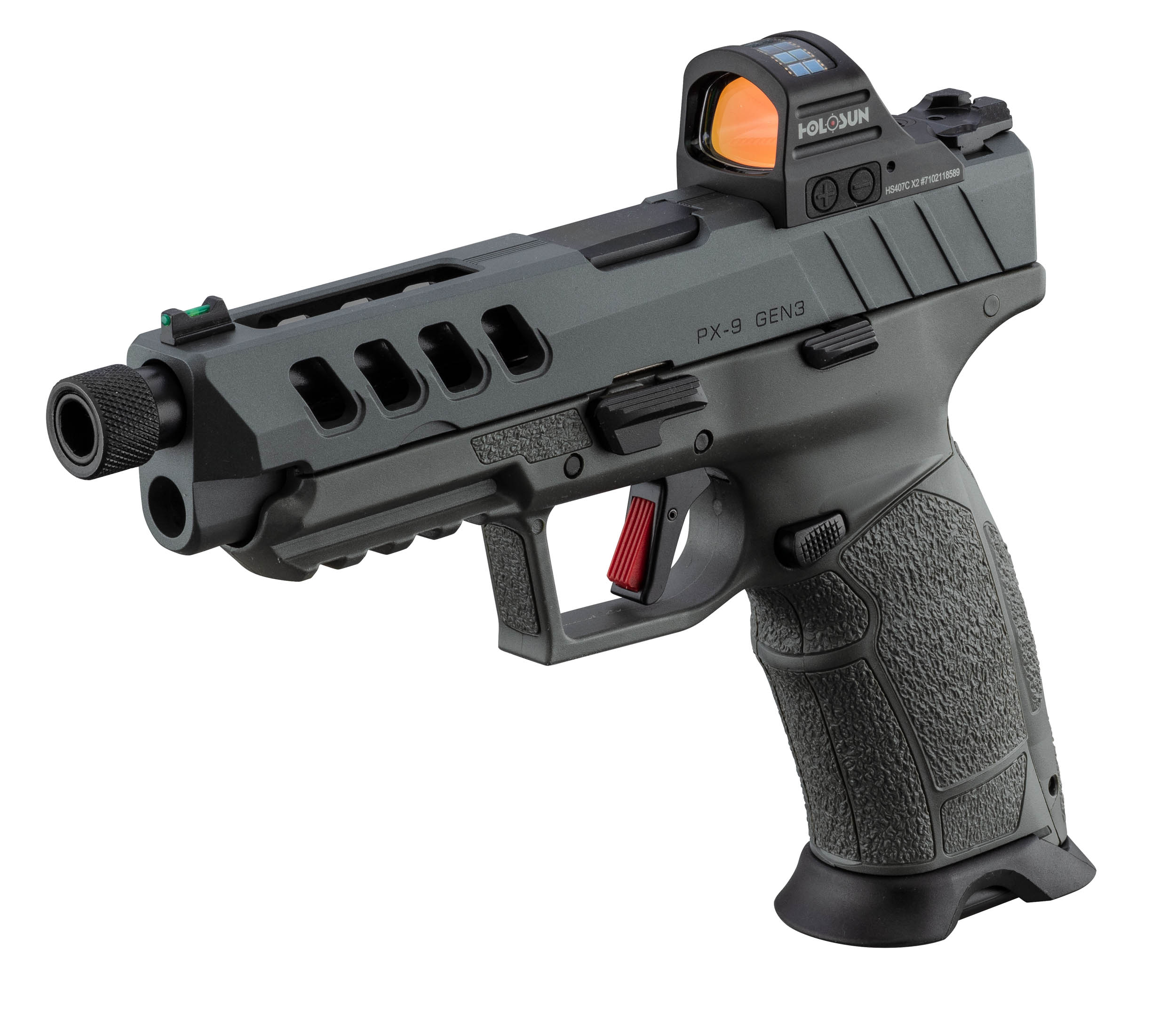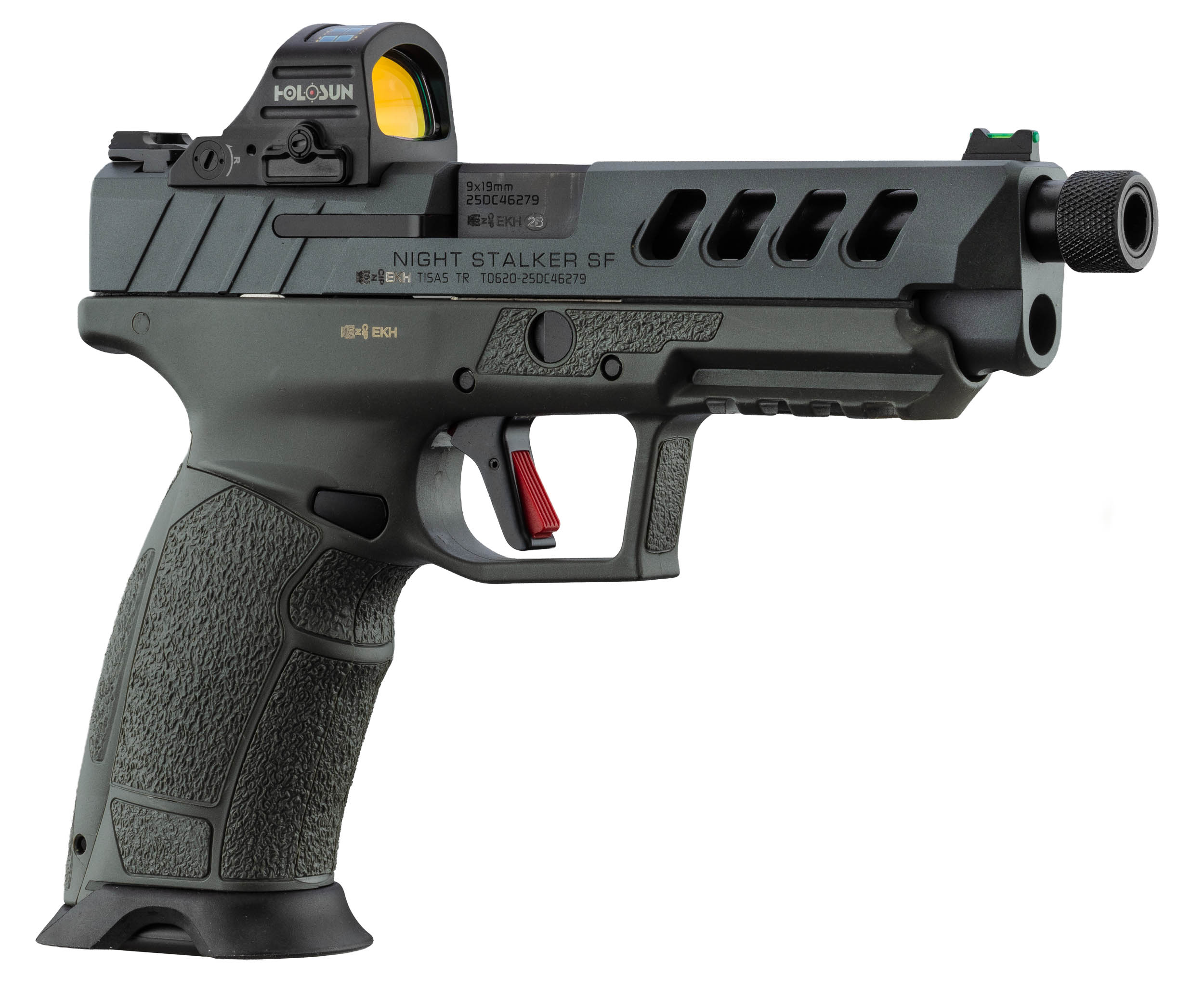 Le Tisas PX-9 Night Stalker SF Gen3 en calibre 9x19 mm est un pistolet semi-automatique moderne conçu pour le tir sportif. Cette version spéciale combine une configuration filetée, optic ready et une culasse ajourée pour améliorer la dynamique de tir. Il est livré avec un Holosun HS407C, micro viseur point rouge robuste permettant une acquisition rapide de la cible.