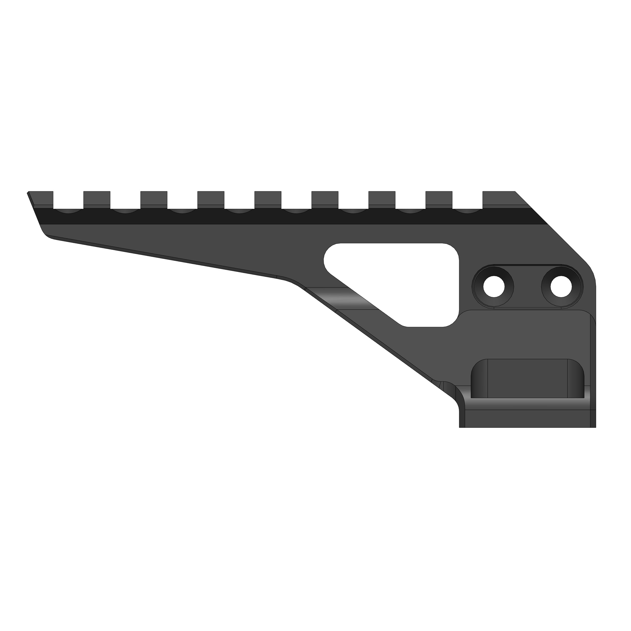Avec le Scalarworks KICK/01, on gagne immédiatement en modularité. Ce support type Dive Board permet d'ajouter un accessoire optique (viseur secondaire, red dot, télémètre...) en position avancée, directement sur un montage principal compatible FUSE. En pratique, cela fluidifie les transitions de visée tout en conservant une ligne d'arme propre et cohérente.