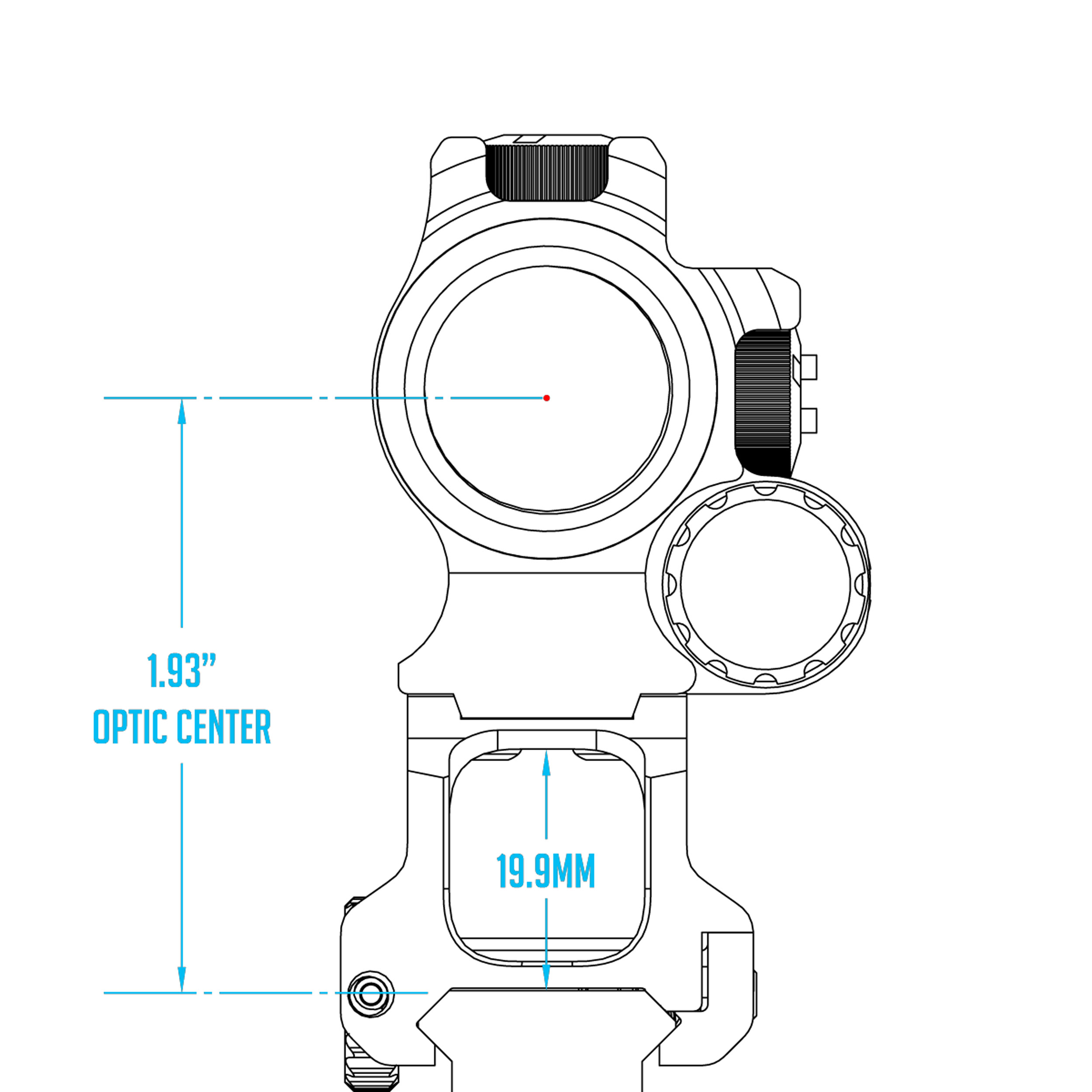 Disponible en 1.57" (40 mm) et 1.93" (49 mm), ce montage permet d'adapter la ligne de visée selon votre configuration. En pratique, cela améliore le confort et la rapidité d'acquisition en situation dynamique.