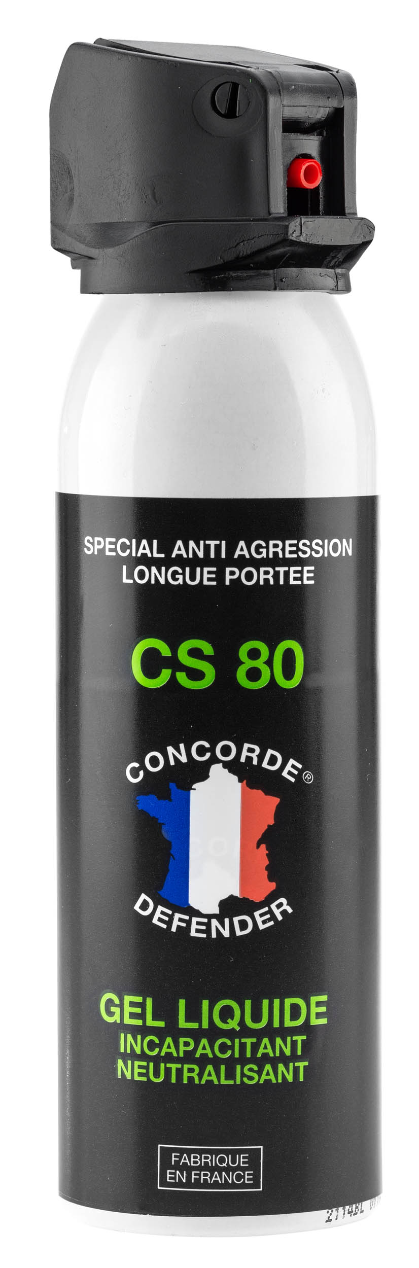 Aérosols GEL CS Effet lacrymogène et incapacitant. En gel, effet localisé à l’agresseur, moins sensible au vent. Effet 20 à 40 minutes, sans séquelle.